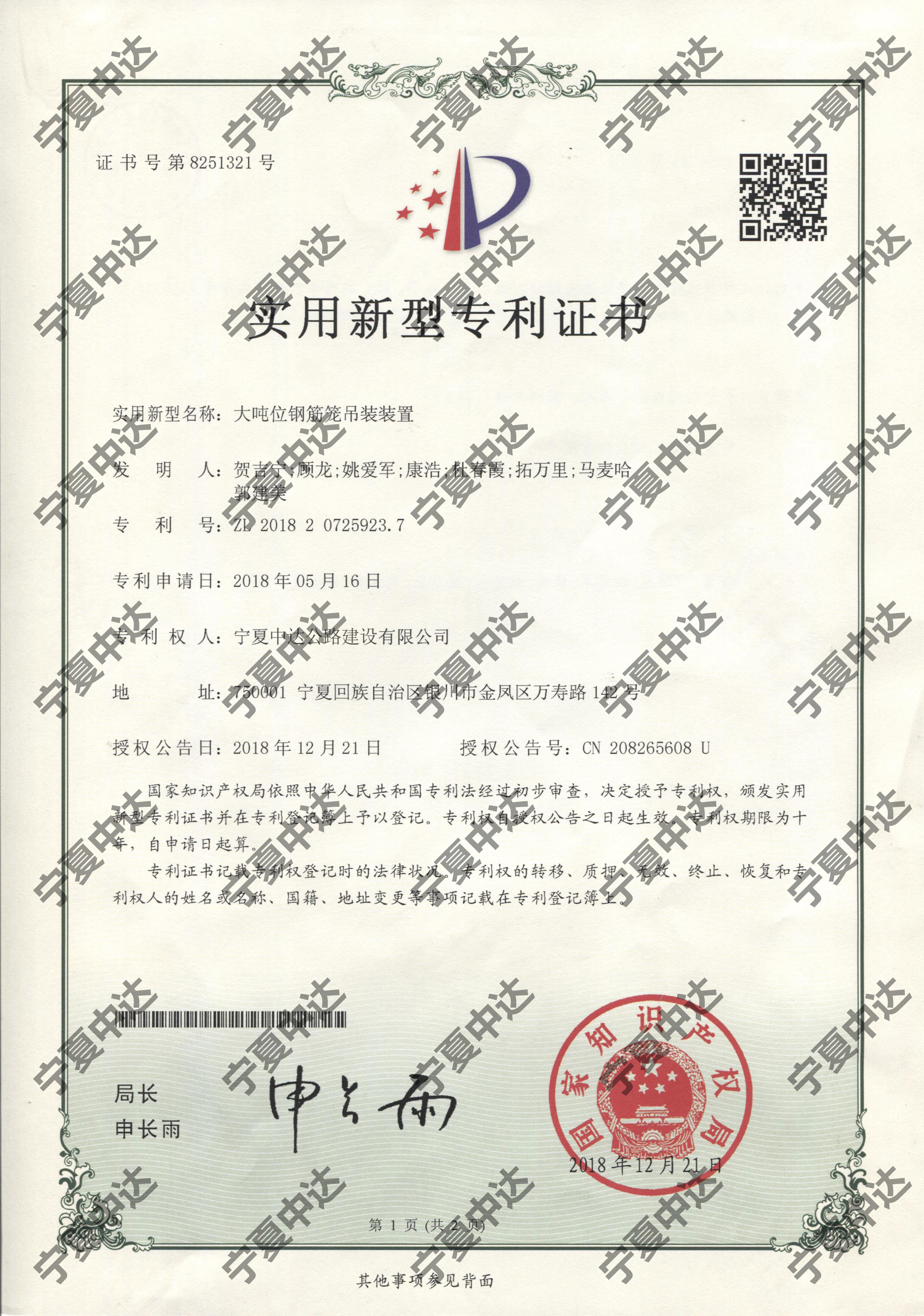 實(shí)用新型名稱:大噸位鋼筋籠吊裝
