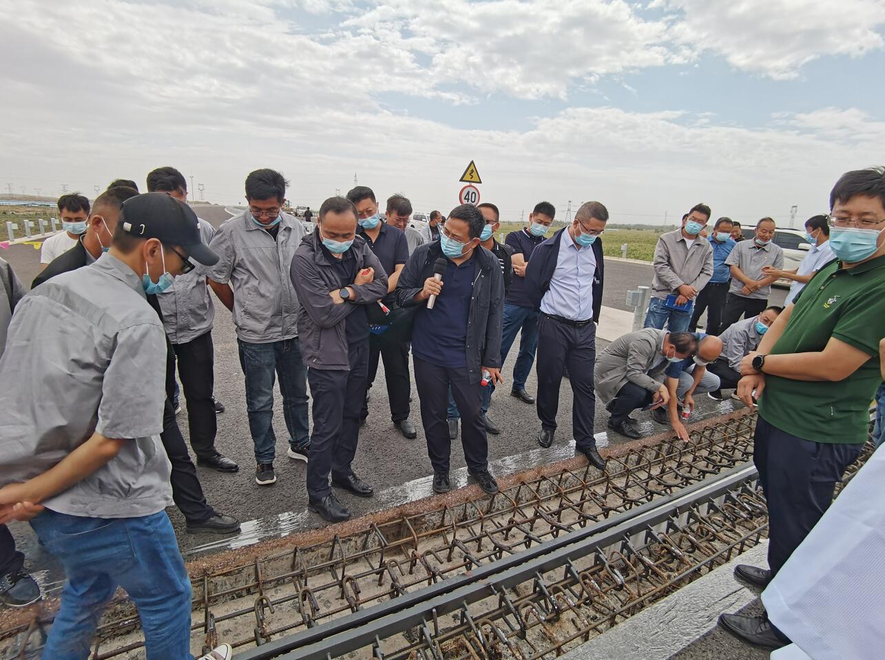 王偉總工程師充分肯定了烏瑪A5標在瀝青路面施工中所采取的各項技術創新和質量措施。他表示:要堅決貫徹“質量贏取市場、創新驅動發展”理念,在堅持問題導向、目標導向、結果導向方面,烏瑪 A5 項目起到了很好的示范引領作用;要有更強的自信心,打開思想壁壘、沖破固化思維,勇于嘗試采用新材料、新技術、新工藝去解決工程質量問題,真正做到讓技術創新為提質增效服務;要以觀摩項目為樣板,深度挖掘策劃管理的差距和不足,充分解決好策劃編制不嚴謹、過程落實不堅決等問題。