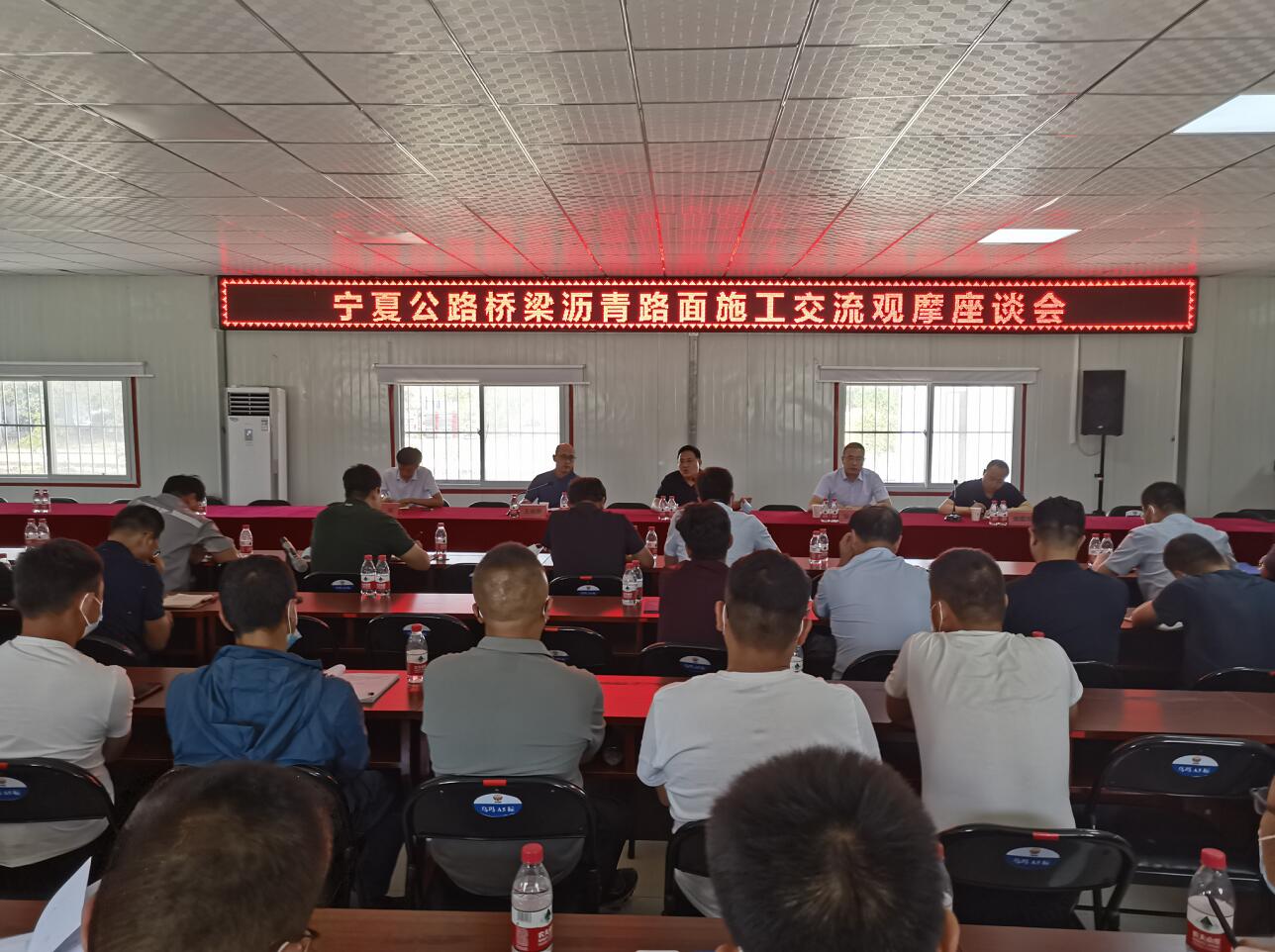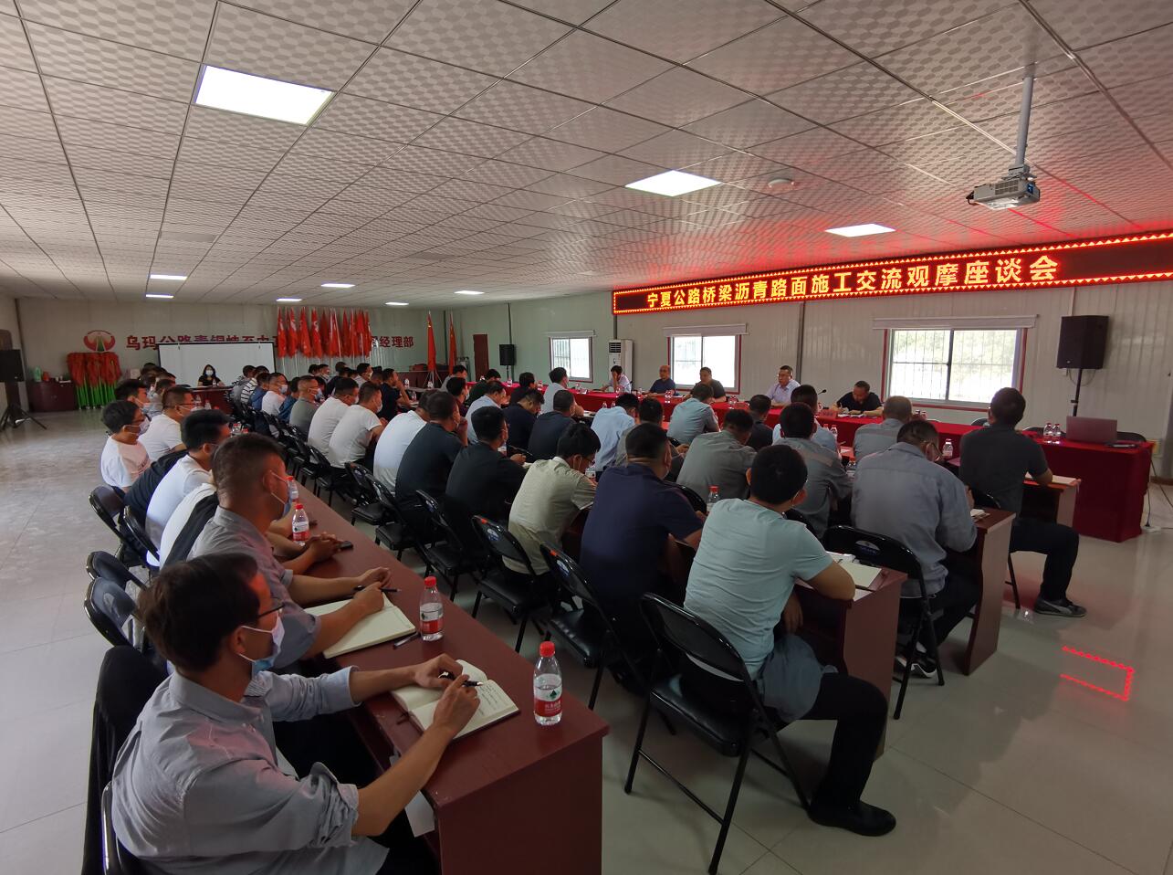 在瀝青路面施工現場,全體參觀人員聽取介紹、實地觀摩,深入了解了烏瑪 A5 項目瀝青面層所具有良好的密實性、均勻性和行車舒適性,大家一致認為取得效果良好的路用性能和質量,與項目的系統策劃控制、試驗技術扎實運用是密不可分的。隨后,烏瑪A5 標項目和公司中心試驗室分別就瀝青路面試驗技術與早期病害防治技術作了主題交流報告,在建項目多位管理人員踴躍發言,分享路面施工經驗。