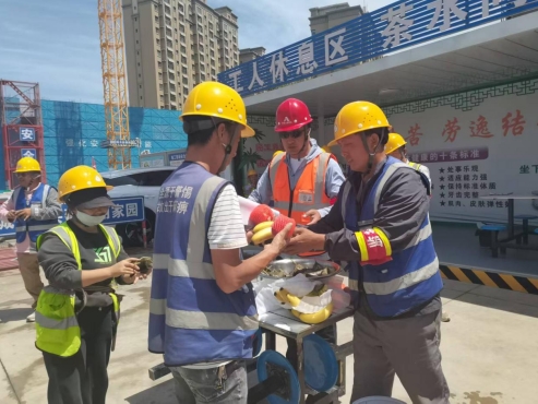 在嚴格把控安全生產的同時,項目部始終關懷工友們的生活需求。端午節當天,項目領導班子帶領管理團隊為工友們送上粽子、香蕉、蘋果等節日慰問品。慰問現場,項目負責人與工友們親切交流:“在這個本該與家人團聚的日子里,你們舍小家、為大家,依然堅守崗位,為高橋家園保障性租賃住房項目建設揮灑汗水。正是因為有你們的辛勤付出,項目才能穩步推進。希望大家在作業的同時,一定要把安全放在首位,注意勞逸結合、保重身體。”真摯的話語如汩汩清泉,流淌在每位建設者心間。