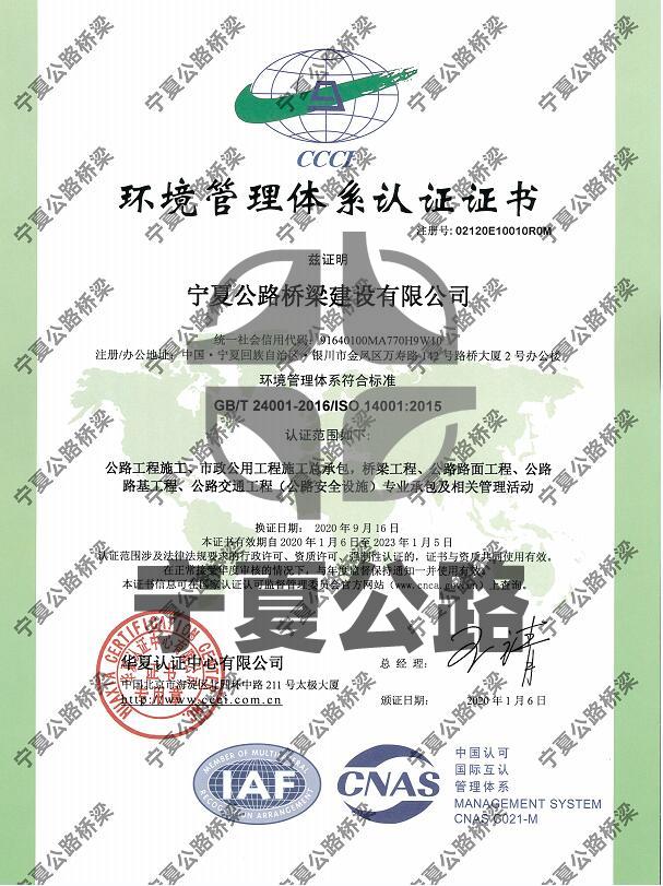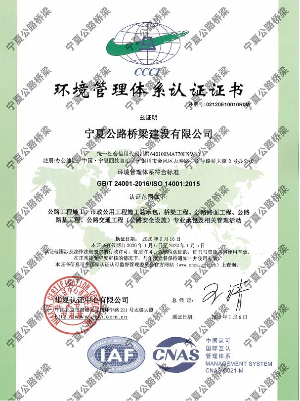 環境管理體系認證證書