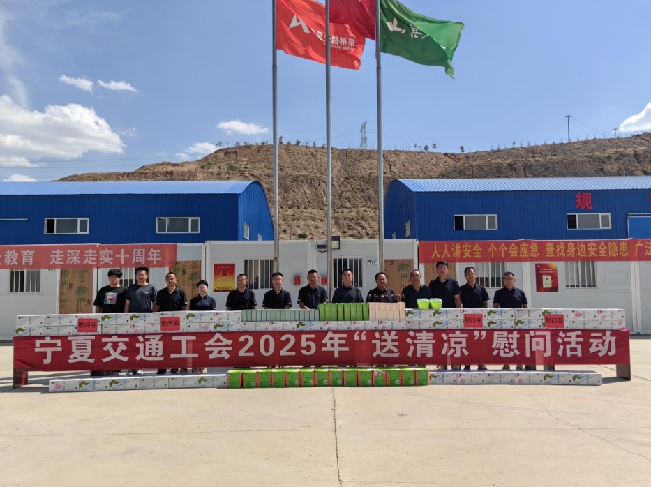 七月份的高溫天氣,炙烤著工地上的每一片土地。為切實保障一線職工的身心健康,寧夏交通工會主席、公司工會主席等一行領導到國道629線中下路A1標項目部,組織“送清涼”慰問活動,為堅守在工作崗位上的勞動者送來關懷與清涼。