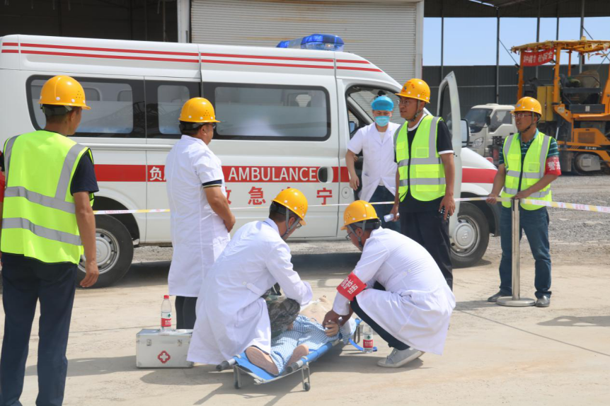 本次演練分報警組、警戒組、搶險組、消防組、醫療救護組、事故調查組和綜合協調組7個小組,由項目經理秦國榮擔任總指揮,總工王飛擔任現場指揮。事故發生后,總指揮立即啟動火災事故應急預案,并通知現場指揮帶領各應急小組趕往現場,立即展開工作。整個演練過程中,應急指揮小組臨危不亂、指揮得力。各演練小組反應迅速、密切配合,在大家的共同努力下,圓滿的完成了本次火災事故應急救援任務。演練活動期間,項目部邀請寧東鎮人民醫院醫護人員進行了應急救援知識講解,與大家交流了安全事故發生時的注意事項,大家積極踴躍提問發言,營造了良好的現場交流氣氛。